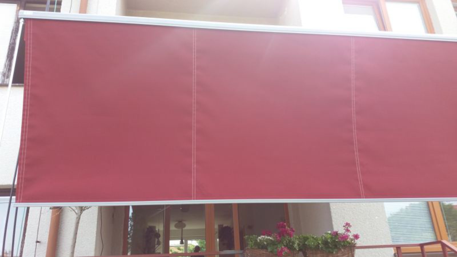 Kloubová markýza s nosným trojhranným profielm SELECT S8130. Spouštěcí volán umožňuje ochranu před západním sluníčkem.